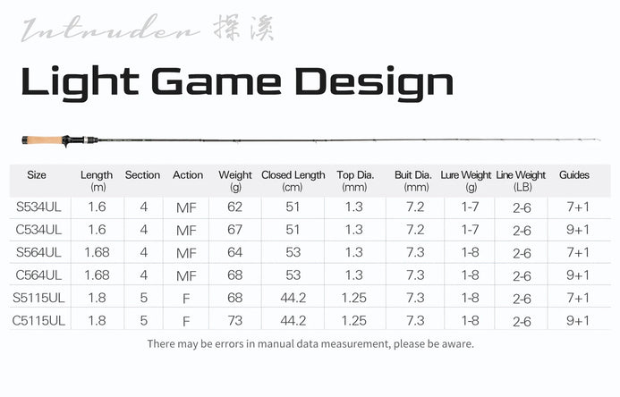 Tsurinoya INTRUDER Casting/Spinning Rod 1.6m/1.68m 4PC MF Action