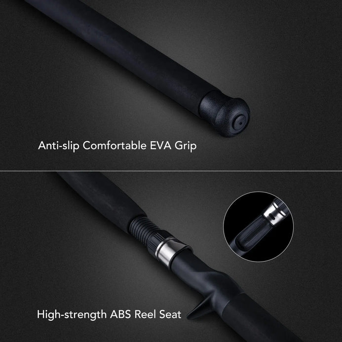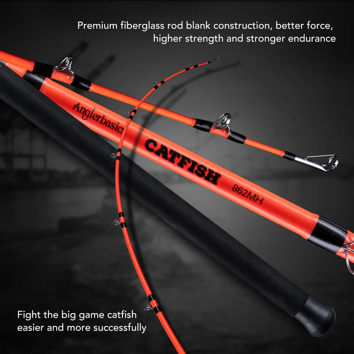 Premium fiberglass rod blank construction,better force,higher strength and stronger endurance. Fight the big game catfish easier and more successfully.