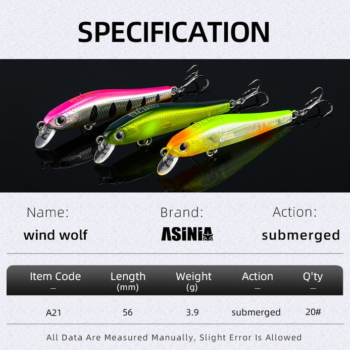 - ASINIA Wind Wolf 56mm 3.9g Crankbait