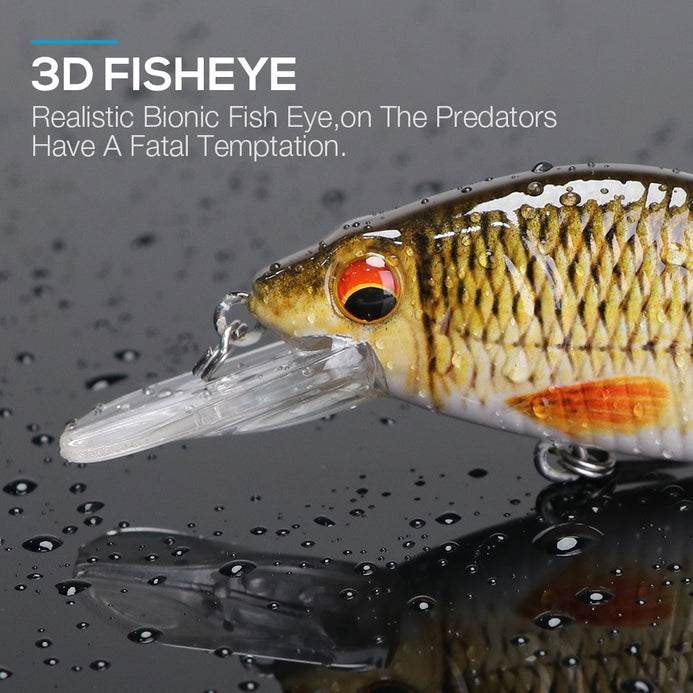 1.Bionic Minnow:3D lifelike eyes, High resolution body detail, 2 strong and sharp treble hooks.