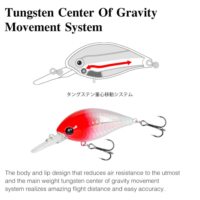 The body and lip design reduces air resistance to the utmost and the main weight tungsten center of gravity movement system realizes amazing flight distance and easy accuracy. -