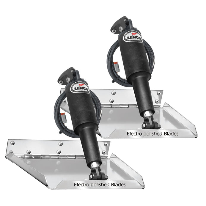 Upgraded electro-polished trim blades with stouter 1/4" diameter hinge pin make these Performance Trim Tab Kits a cut above the base level Lenco Standard Mount Kits. Equipped with the same fast response electric actuators for precise control. Fully submersible with all Plug & Play Deutsch connections. Blades are Electro-Polished 12 gauge - 304 SS with 1" turned up edges (the 16" x 12" and the 18" x 14" have an 85 degree inside taper) and 1/4" diameter hinge pin. Kit includes Standard Actuators with 5/16" SS bolts. The actuators mount at the trailing edge of the blades
