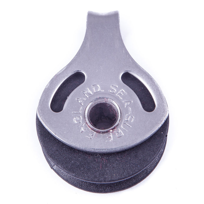 The 19mm carbon fiber sheave block range is designed for use with abrasive ropes for high-load applications. The outer cage is manufactured from marine-grade 316 Stainless Steel with a hollow stainless steel rivet through the center of a carbon fiber sheave.