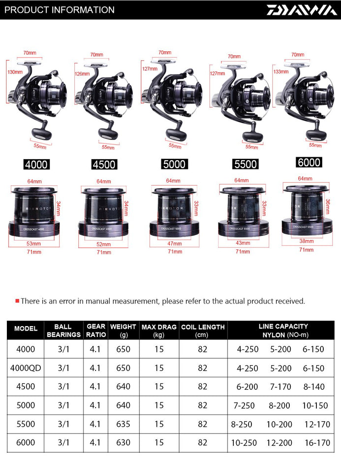 Challenge the open waters with the Daiwa Crosscast Spinning Reel! This spinning reel features a 4.1:1 gear ratio, 3+1 ball bearings for smooth performance AND an impressive 15Kg max drag force to take on some big time catches. Conquer the seas with power and precision!