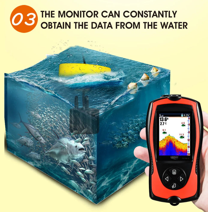 The transducer can scan&release the water area ,and sonar can detect fish location.