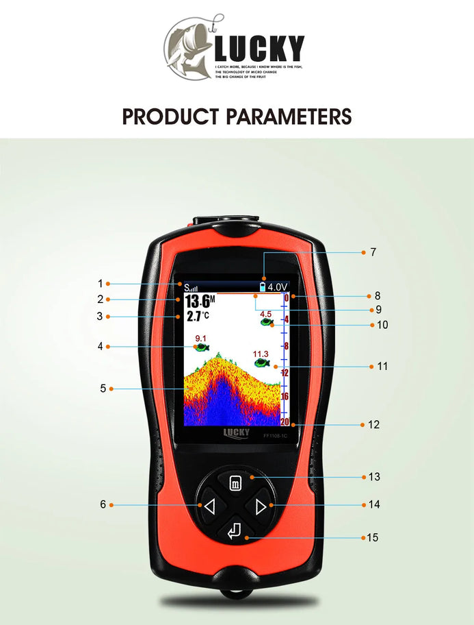 7) Water depth,water temperature, fish location, bottom contour can be constantly obtained from the water