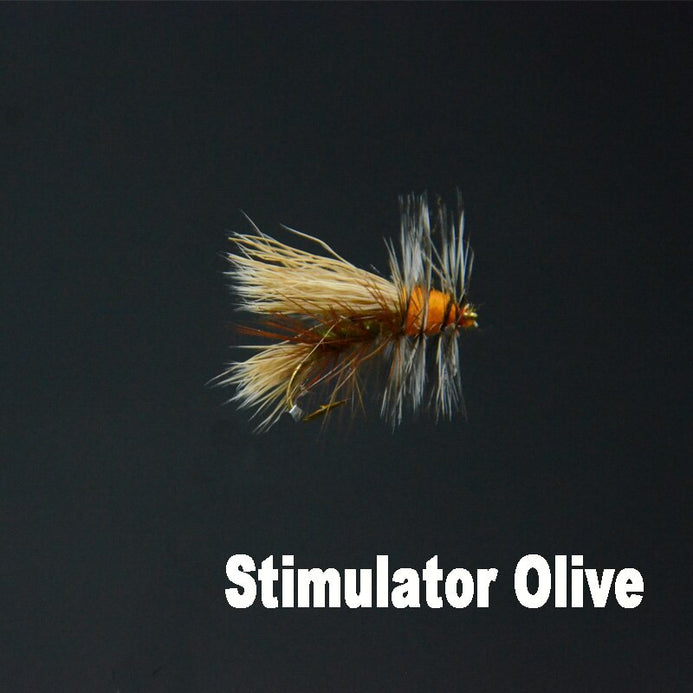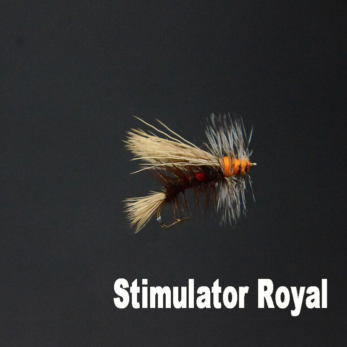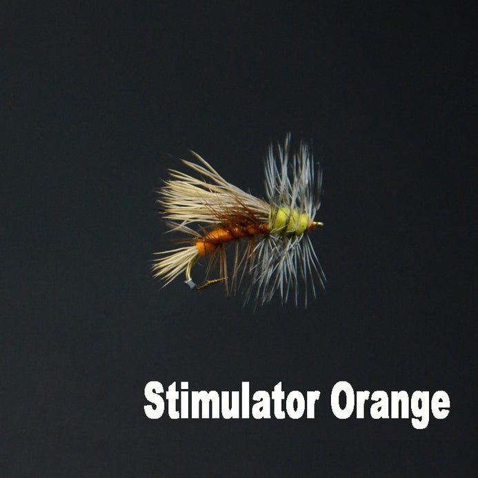 Features: The Stimulator is a large, high floating fly with low wing profile that imitates a variety of caddis and stonefly species. With a tail and wing it is highly buoyant and can be fished dead drift or skated. It is tied on different sizes to imitate stonefly, caddis or hopper patterns.