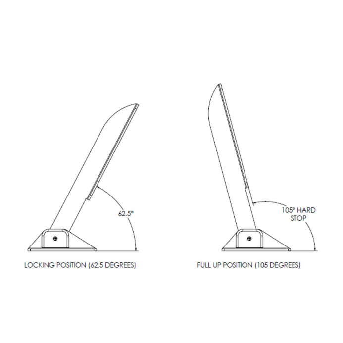 Building upon the popularity of the H25-0023 heavy-duty Command Ratchet Hinge, this 18-1/2" hinge features a hard stop at 105º and is ideal for longer seat backs up to 22". This extended specialty hinge features one locking position at 62.5º and is perfect for sun pads, bolsters, and lounge backrests.