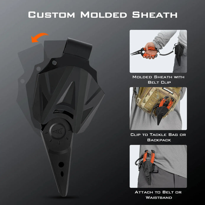 • Easy Storage and Accessibility: Keep your tools within arm's reach with thoughtful additions like a coiled lanyard and a custom molded sheath with a belt clip for the pliers, facilitating easy storage and quick accessibility during your fishing adventures