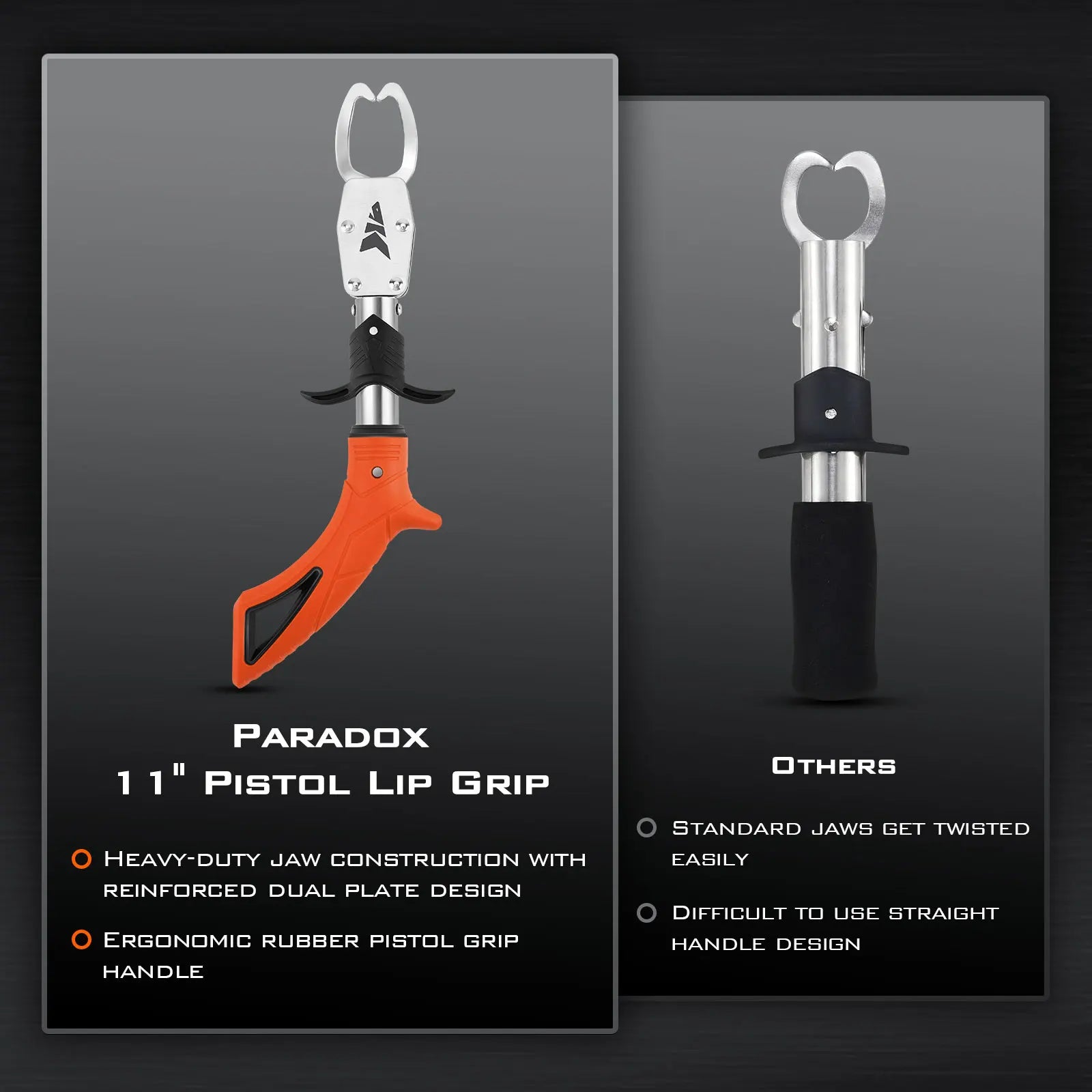 • All-in-One Fishing Tool Set: Equip yourself with the Paradox 7.5” Pliers and 11” Pistol Lip Grip set, offering a combination of strength and versatility with its corrosion-resistant 420 stainless steel construction