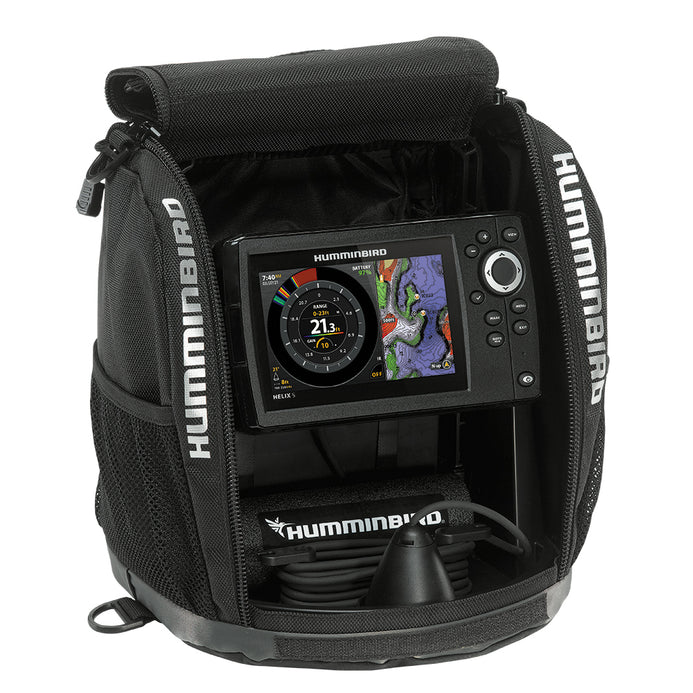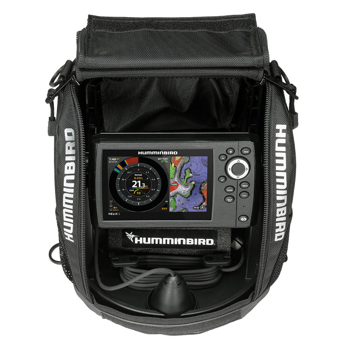 - Portable Shuttle and Carrying Case: The soft-sided carrying case and shuttle mount protect your Humminbird ICE HELIX for safe transport and include built-in cable and transducer management.