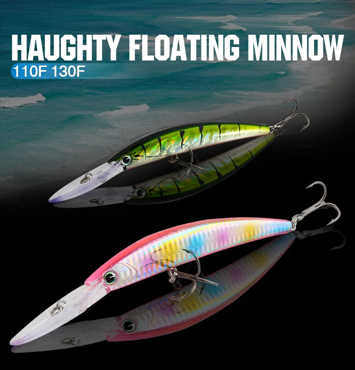 1. Haughty Hard Minnow Fishing Lures, Deep Diving Sinking Jerkbait Lures with Treble Hook perfect for Bass, Trout, Walleye, Redfish