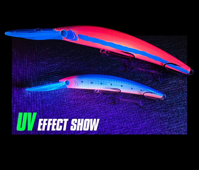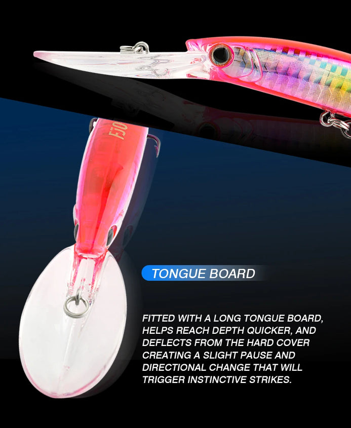 4. DEEP DIVING LIP- Saltwater fishing lures have extended diving lip for working deeper in the water, dives to 12 ft or more while casting and retrieving.