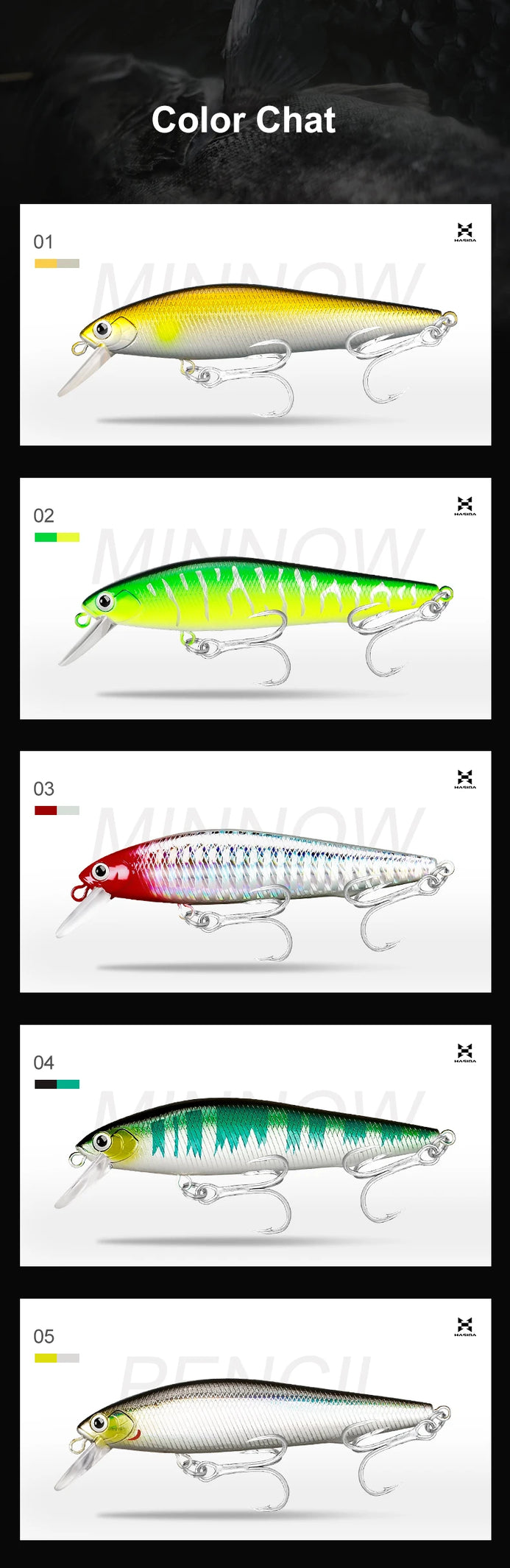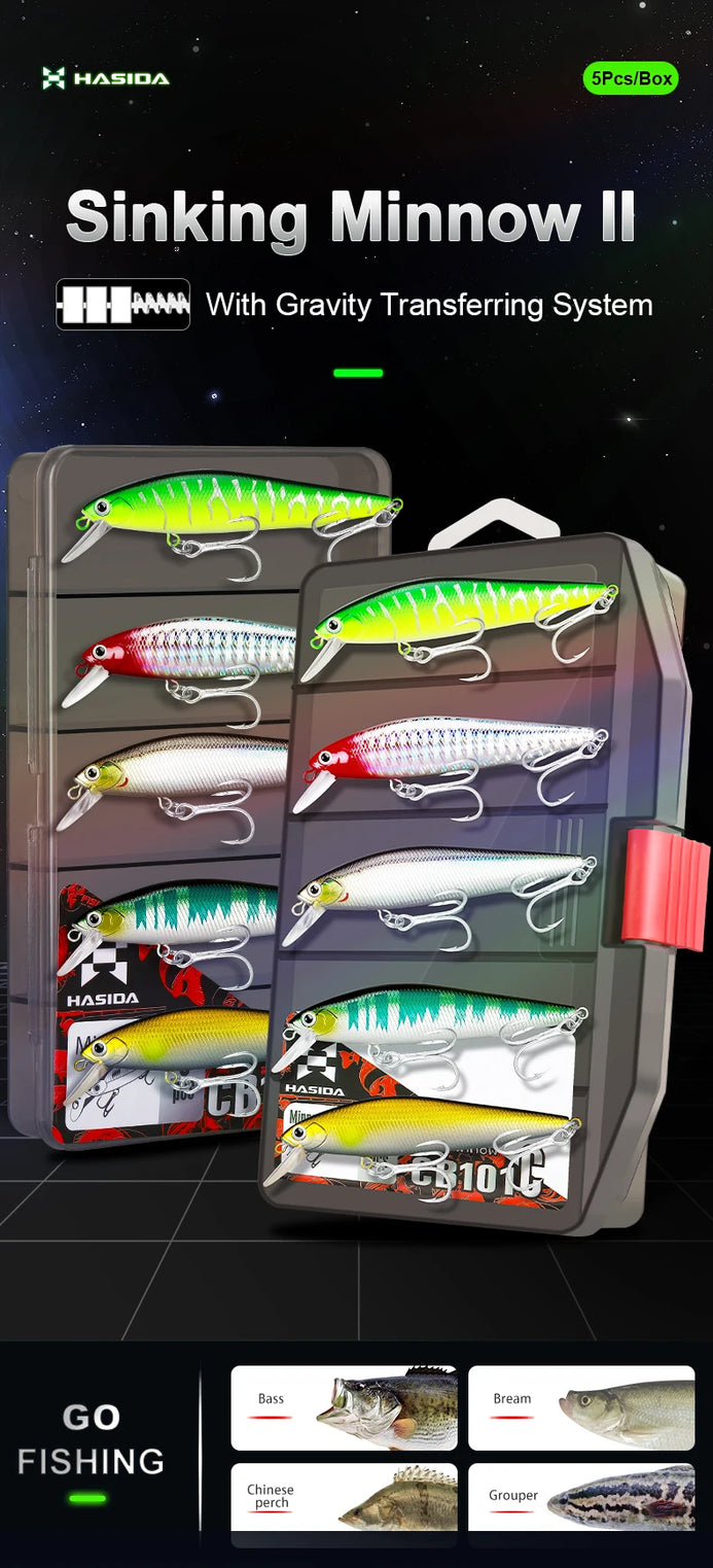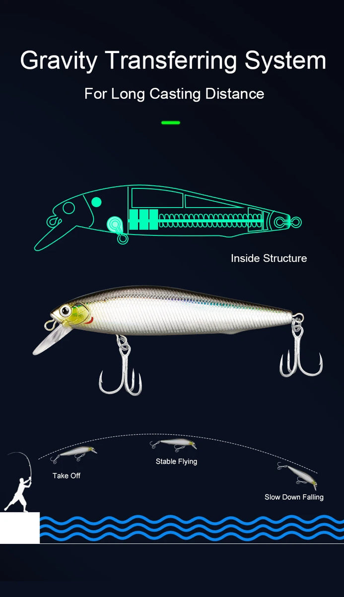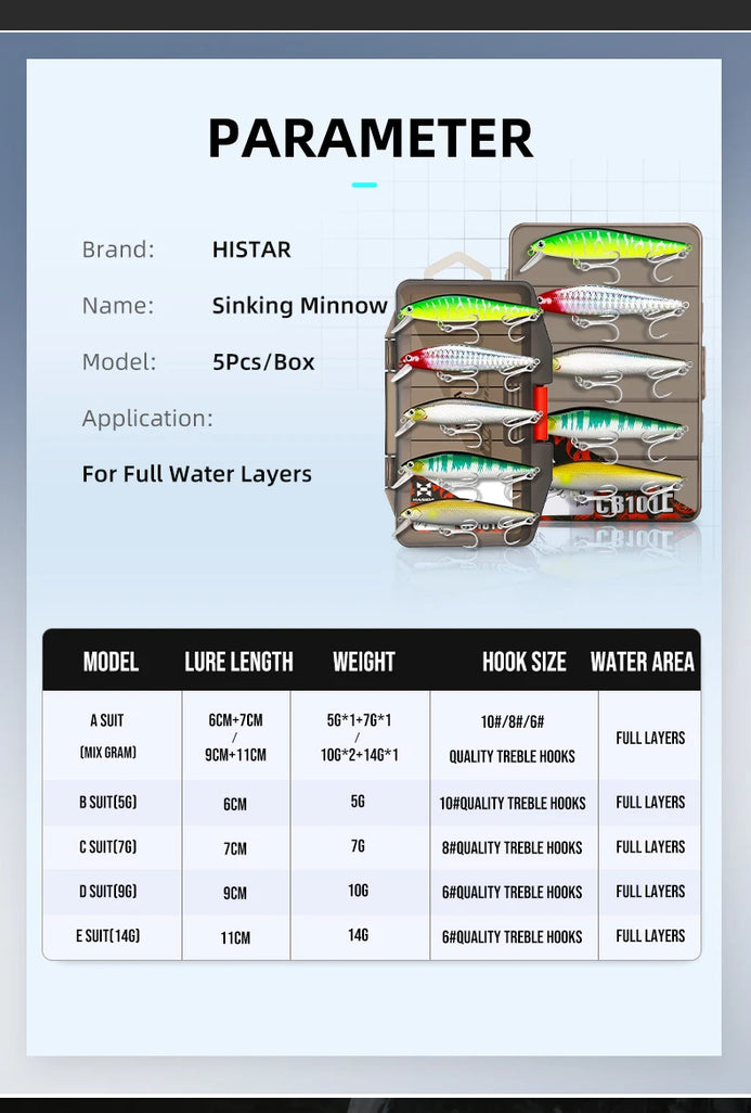 1. Lipped Sinking Minnow Fishing Lure Suitable For a Variety of Fish Species,5 Pieces Per Box