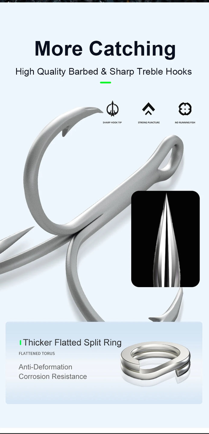 8. High Quality Barbed & Sharp Treble Hooks Ensure Better Catch Retention