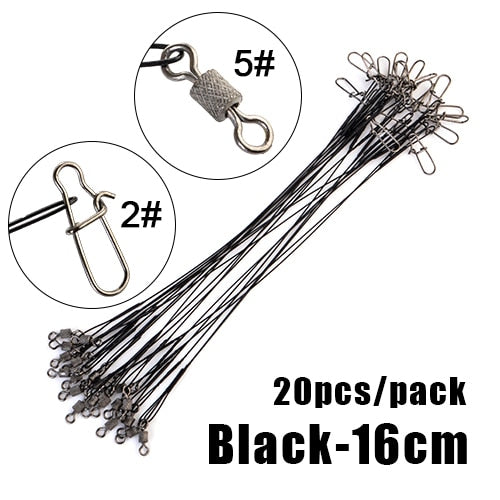 FISH KING 20pcs 16/20/25cm Anti-bite Steel Wire Leader with Swivel