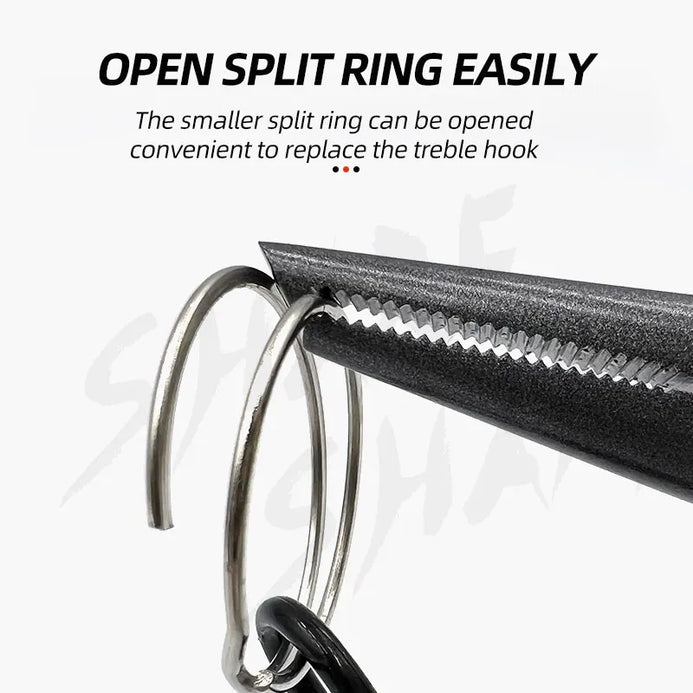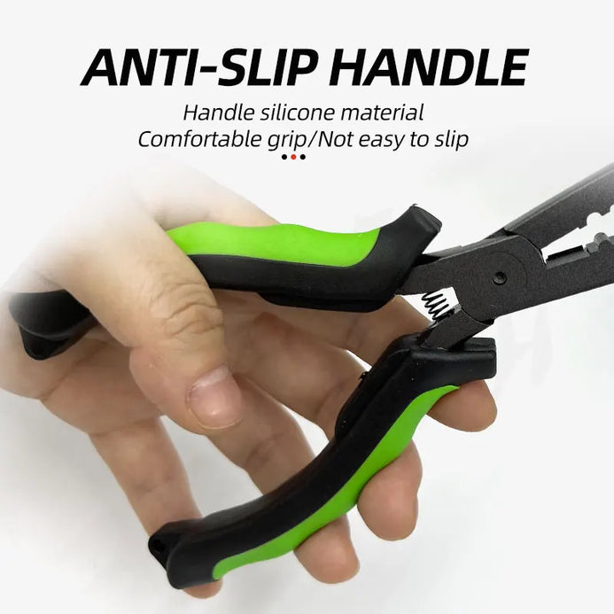 【Multi-Function Jaws】:These fishing pliers are a collection of many practical functions in one.Features spilt ring tip, built-in mono cutters, crimping slots, and lure tuning slots,Carbon steel construction with PTFE Plated.Handy for grip and twist, easy to apply force.