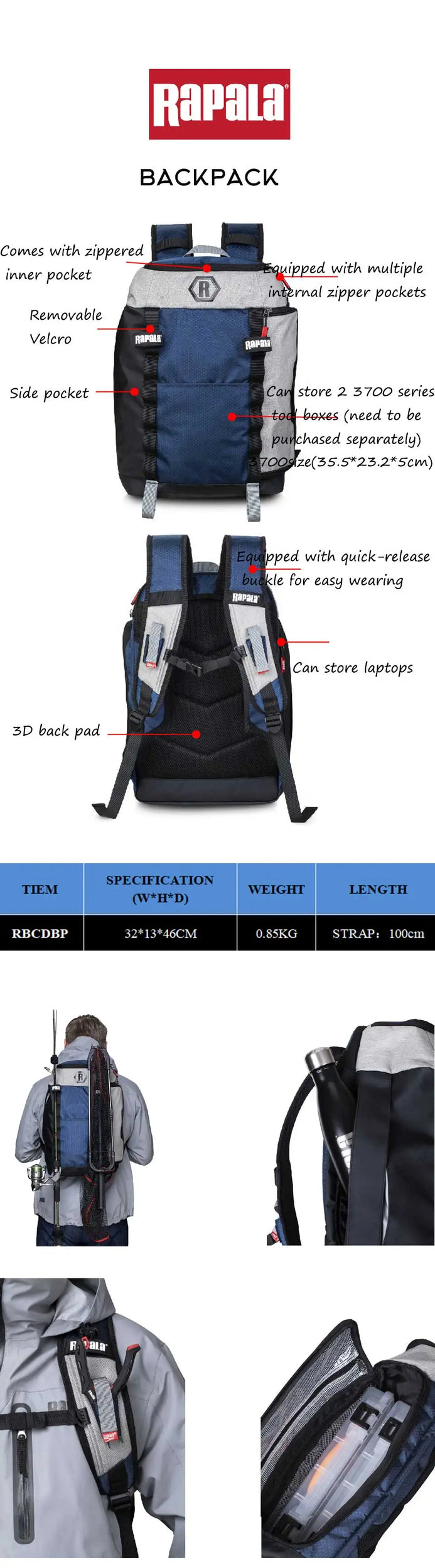 Rapala Jungle Series (Blue) Multifunctional Tackle Backpack & Bags