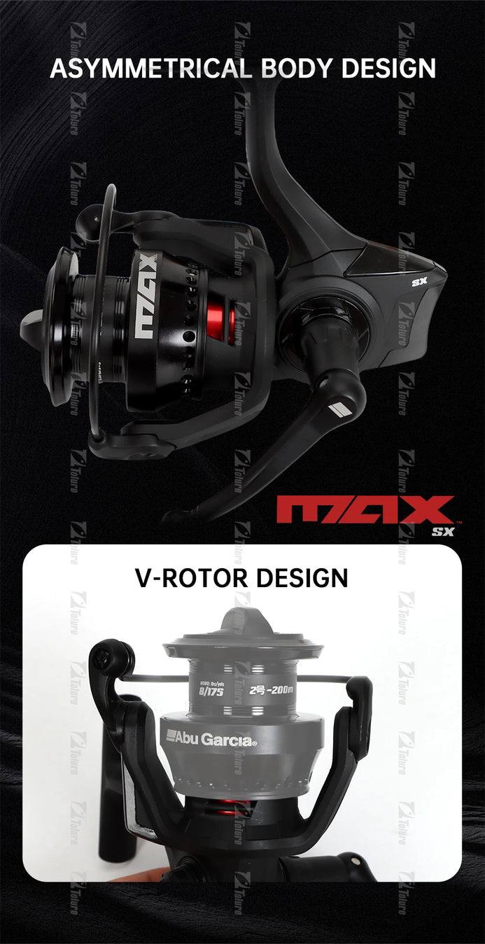 The Max SX Spinning Reel takes inspiration from the Revo® and Zenon™ series of spinning reels, leveraging the asymmetric design, V-Rotor and V-Spool to give anglers a very compact, lightweight spinning reel. A 6+1 stainless steel bearing system and Rocket Line Management™ provide smooth operation and superior line management..