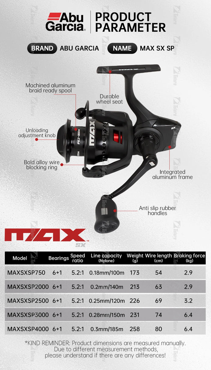 Abu Garcia Max SX (2024 Model) Spinning Reel 5.2:1 Ratio 6+1BB Max Drag 2.9-6.4KG