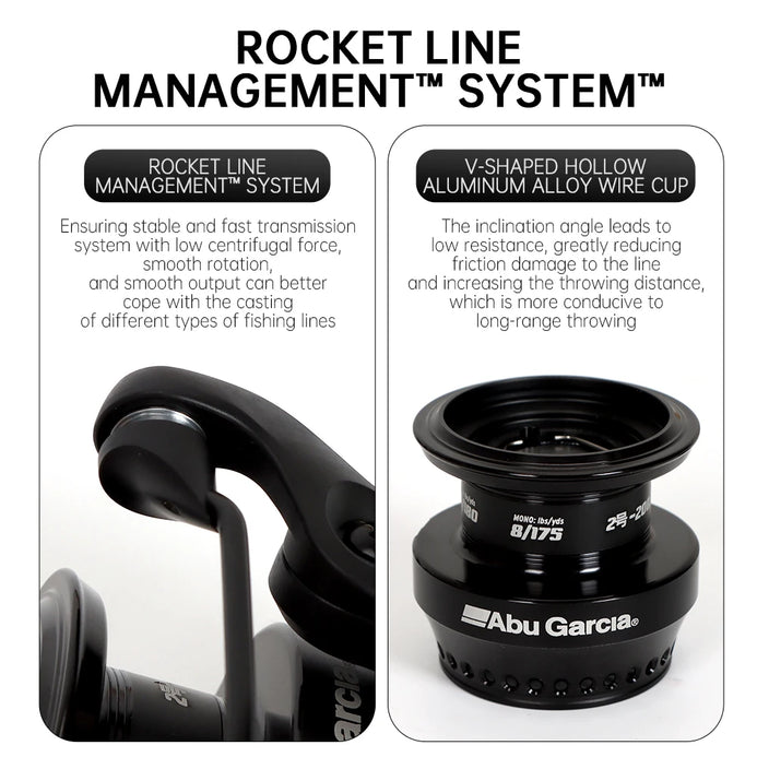 - Rocket Line Management™ system provides better control of all types of fishing lines