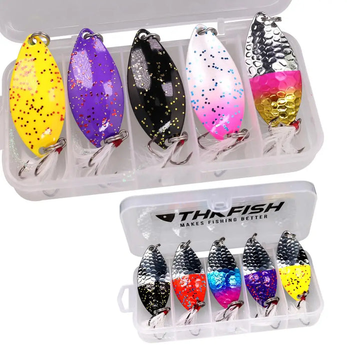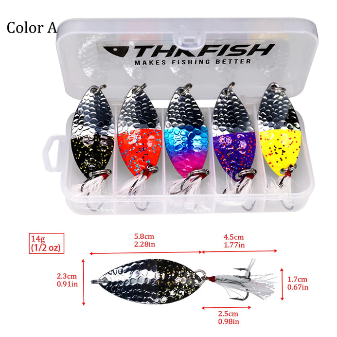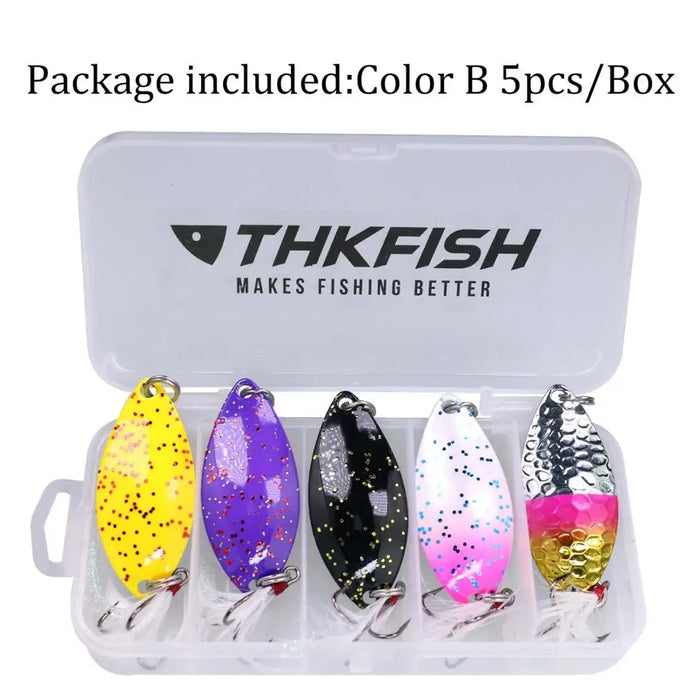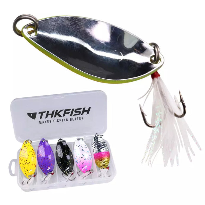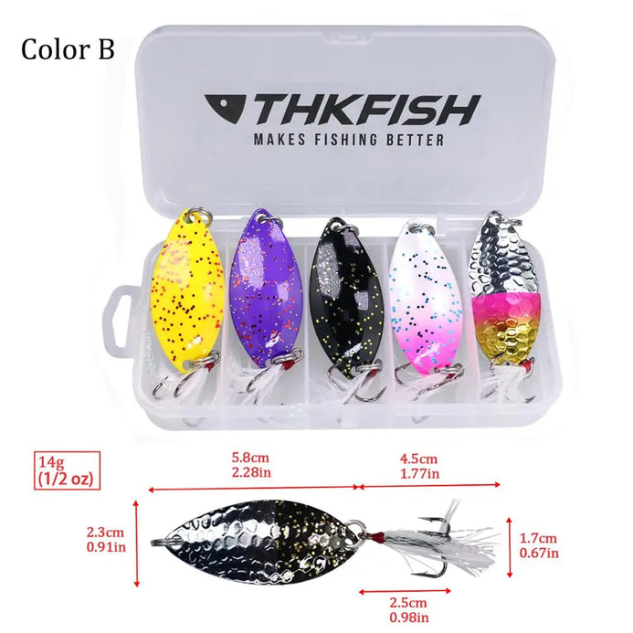 THKFISH 5pcs/box Spoon Lure Set with Feather 14g/5.8cm