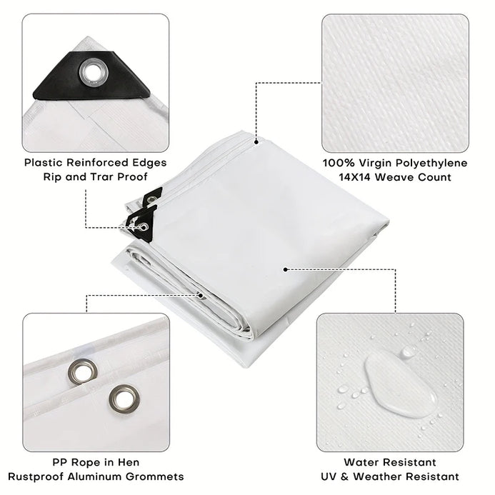 Heavy Duty Durable Waterproof Tarp - Grey Waterproof White Anti-UV Tarpaulin Travel Bird Outdoor Waterproof Tarp