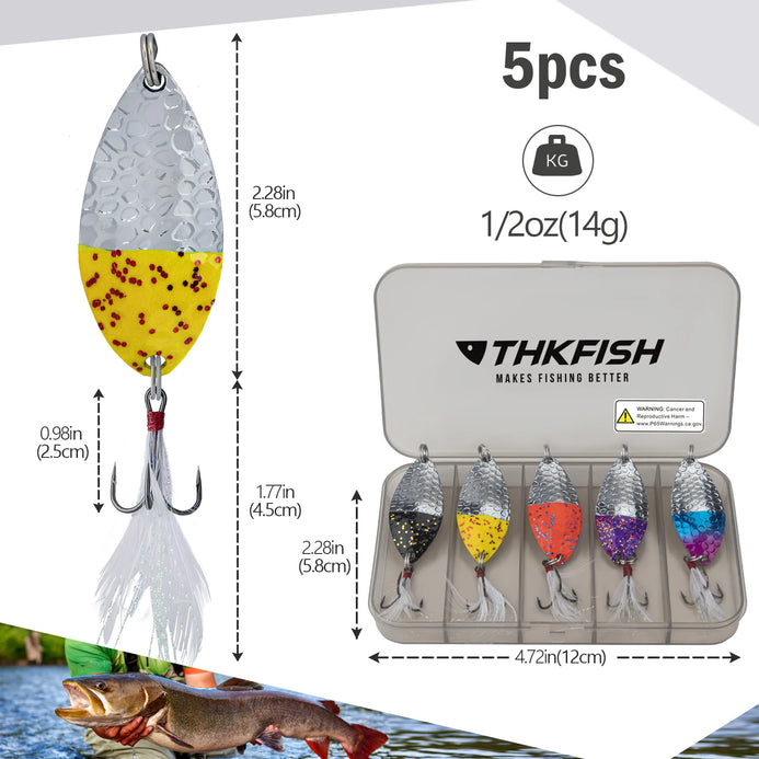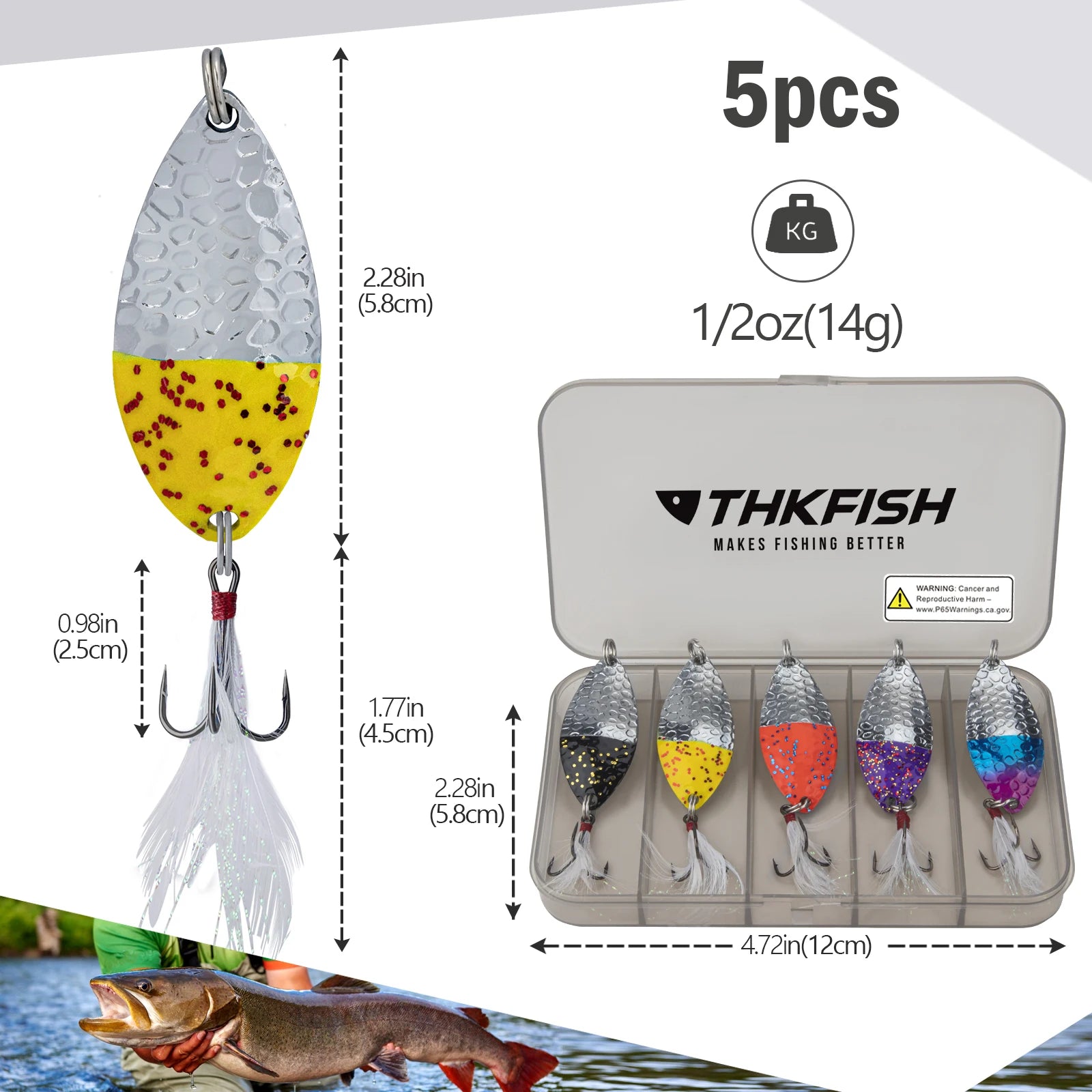 THKFISH 5Pc 6g Spinner Lure Set THKFISH 5pc Spoon Set 14g 20g THKFISH 5Pcs 7g /10g/14g Skirted Jig Set