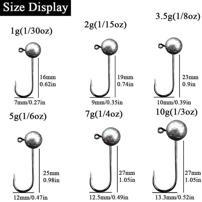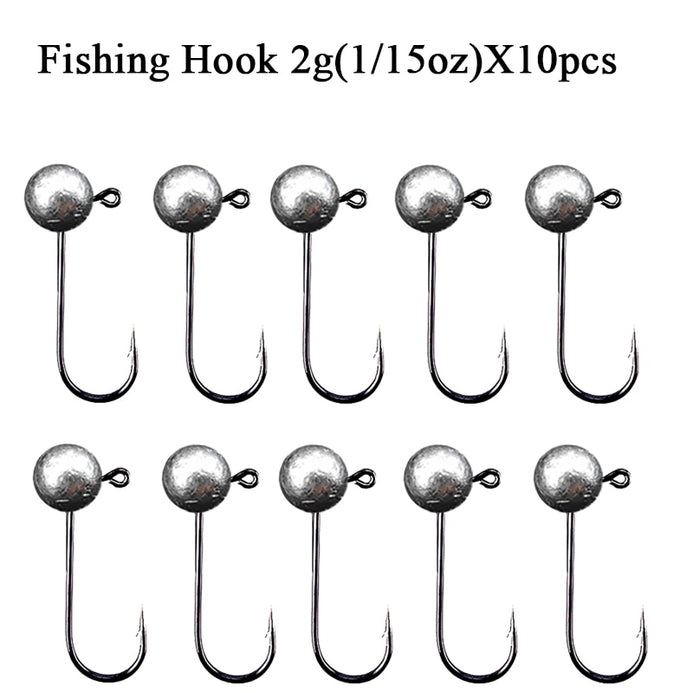 10pcs/lot 1g 2g 3.5g 5g 7g 10g Round Ball Jig Head Fishhook