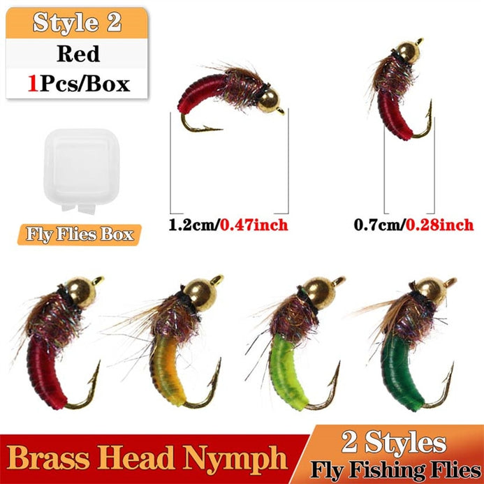 1/5/10Pc Bionic Fly Lure 1Pc #10 Brass Bead Nymph /Maggot Fly Fishing Lure 10Pcs/Lot Bumble Bee/Ant Bionic Fly