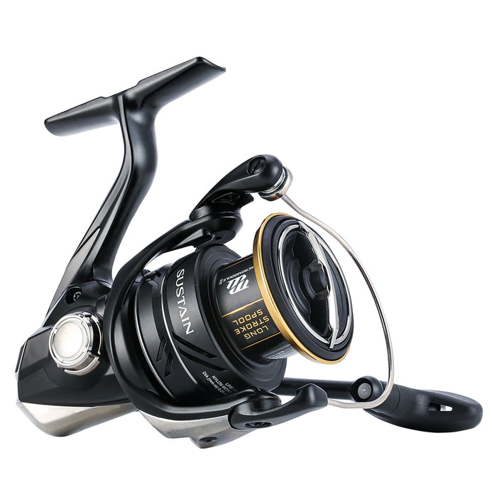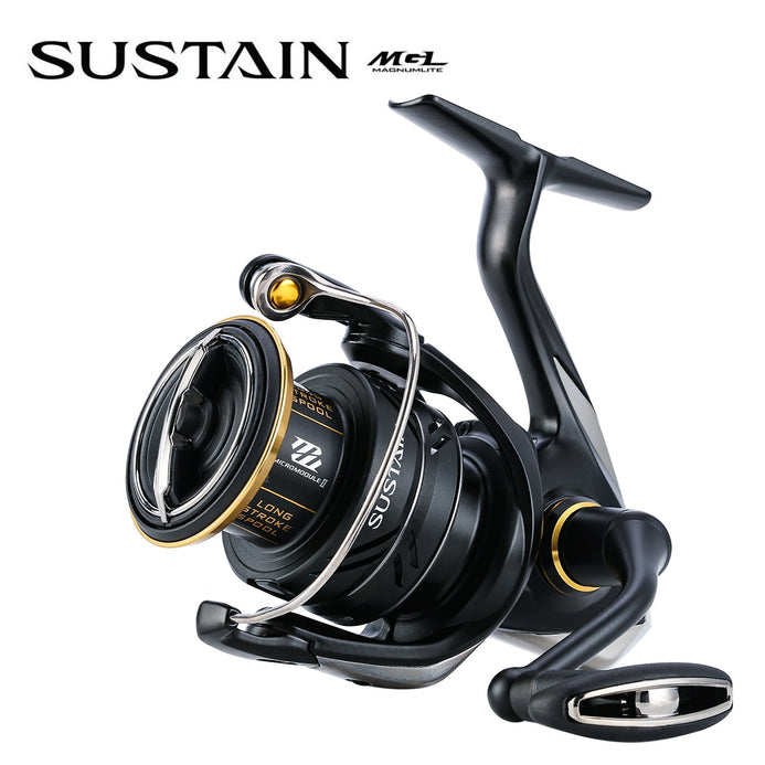 Strong yet sensitive aren't words typically defining an aesthetic show-stopper. But they do illustrate the newly-redesigned Sustain series of spinning reels built to conquer the toughest inshore or freshwater species. One of the strongest in the MagnumLite series of spinning reels, Shimano engineered the Sustain with a redesigned MagnumLite (MGL) Rotor for light start-up rotation and faster hooksets with increased sensitivity. The increased strength of an Aluminum HAGANE Body reduces reel flex when winding against hard-fighting game fish. Lighter than its predecessor, the Sustain now features Long Stroke Spool to provide anglers with improved casting distance. MicroModule II gearing combined with Shimano's HAGANE Gear and SilentDrive technologies offer anglers smooth reeling performance. Sure to turn heads and incite envy from other anglers, the Sustain provides anglers the sensitivity and quick hook-setting performance needed to hook and turn a fish in the heaviest of cover.
