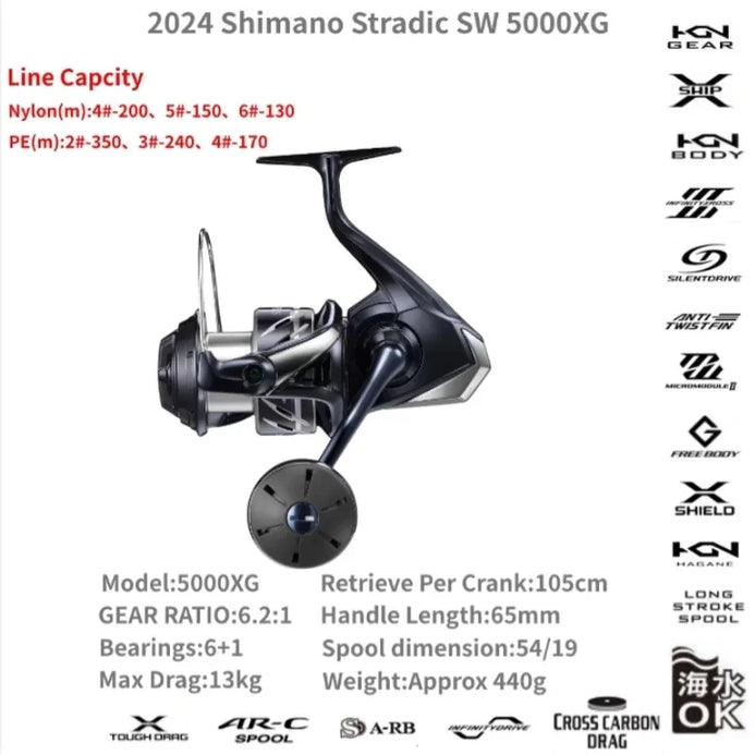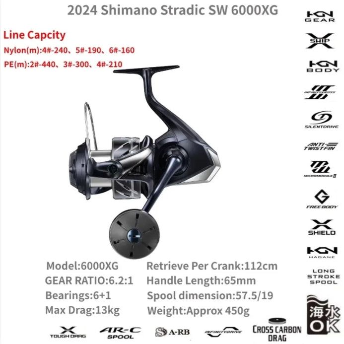 Shimano STRADIC SW Spinning Reel (2024 Version) 6BB+1RB 5.7/6.2/4.6/4.9/5.6