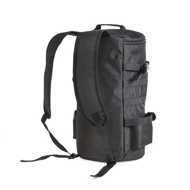 - Large capacity multifunctional cylinder style fishing backpack.