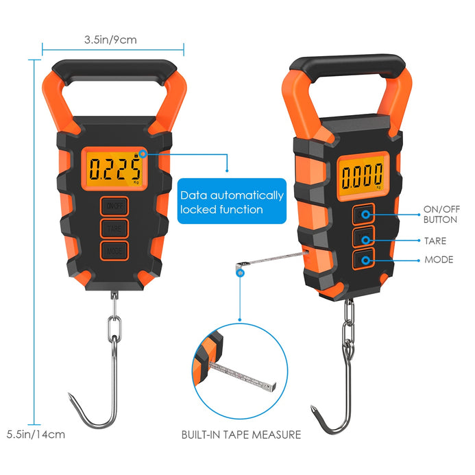 ●Tape measure design: It comes with a 38-inch retractable tape measure to measure that fish at the same time it is being weighed!