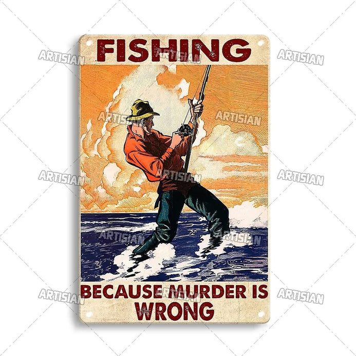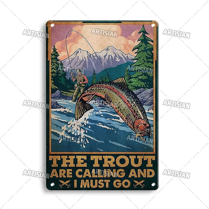 Artisian Decorative Fishing Metal Sign