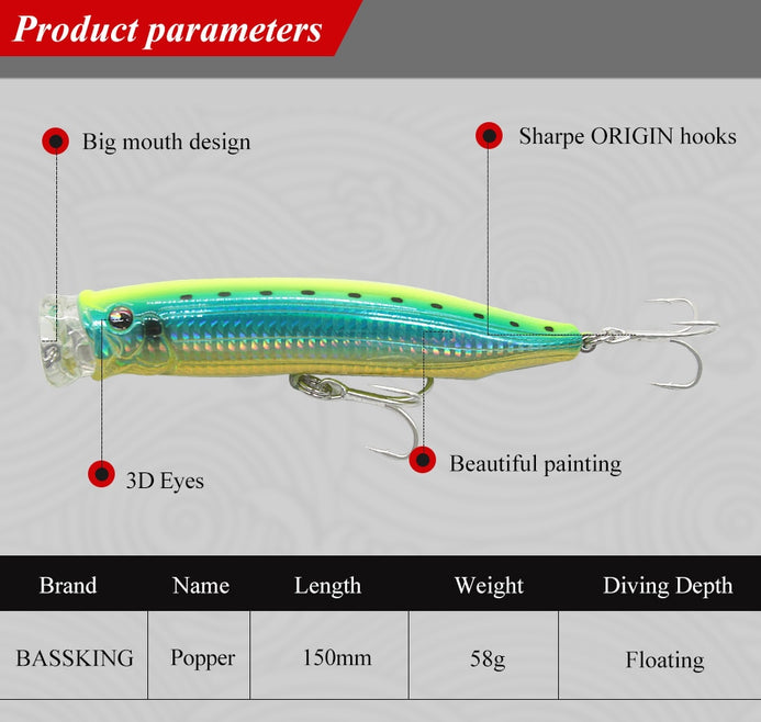 BassKing 150mm 58g Popper Lure