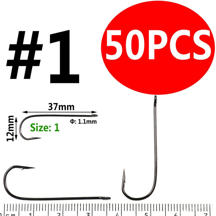 Bimoo 50pcs/lot Size 10 4 2 2/0 3/0 Aberdeen Long Shank Fish Hook