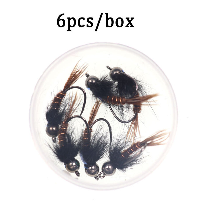Bimoo 6Pcs/Lot #8 #10 #12 Tungsten Bead Head Flash Back Pheasant Tail Nymph Fly