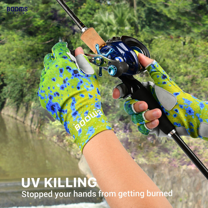 Booms Fishing's FG2 Fingerless Gloves provide a secure, comfortable fit and superior gripping ability with their spandex and microfiber construction and elastic straps. The gloves are also lightweight, quick-drying, breathable, and feature an anti microbial material to ensure breathability in any condition. These are the perfect choice for any angler.