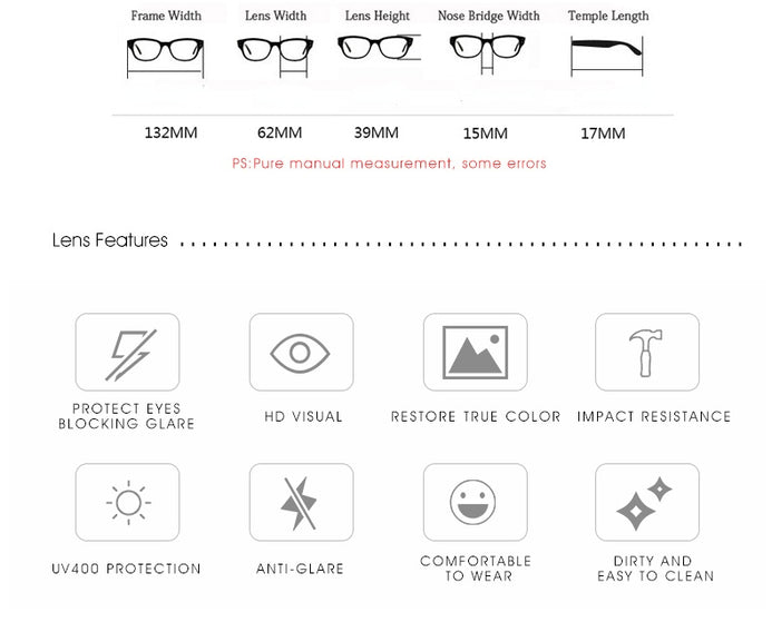 Lenses Optical Attributes: Polarized, Photochromic, Anti-reflective, UV400