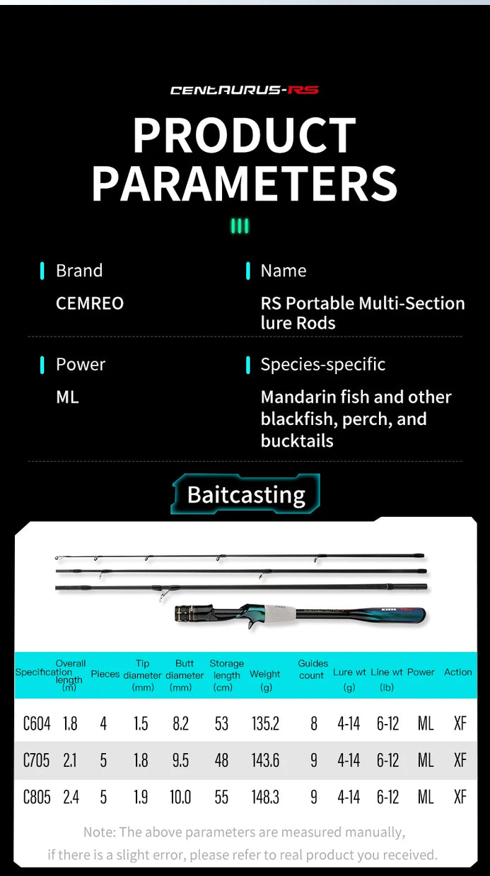 Cemreo Centaurus RS Carbon Spinning/Casting Travel Rod 4-5PC 1.8m/2.1m/2.4m