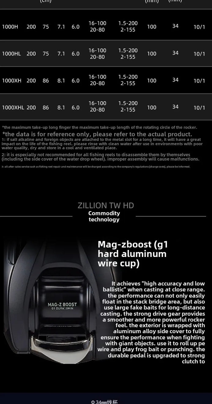 Daiwa Zillion TW HD Baitcasting Reel (2022 Version) 7.1 8.1 10+1BB 6Kg Max Drag
