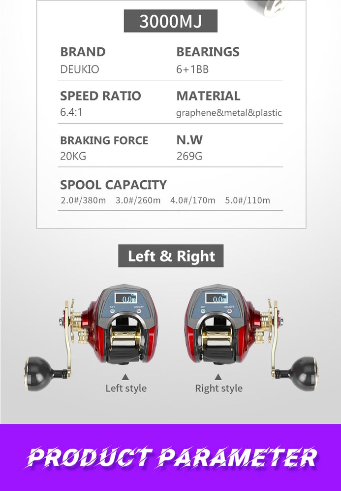 Deukio MJ3000 6.4:1 6+1BB Max Drag 20kg Digital Display Electronic Baitcasting Reel