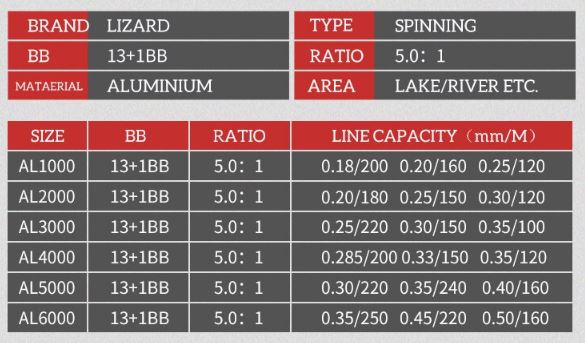 Lizard AL Series Spinning Reel 5.0:1 13+1BB
