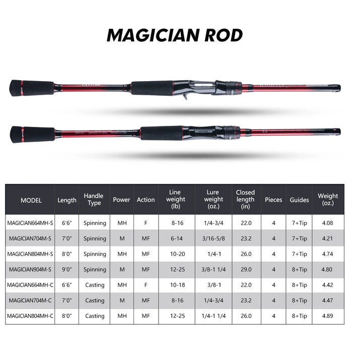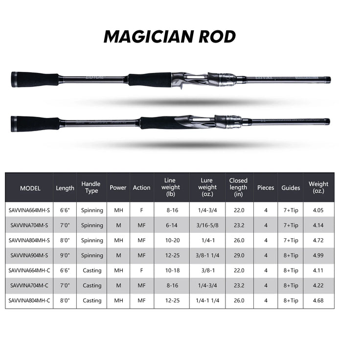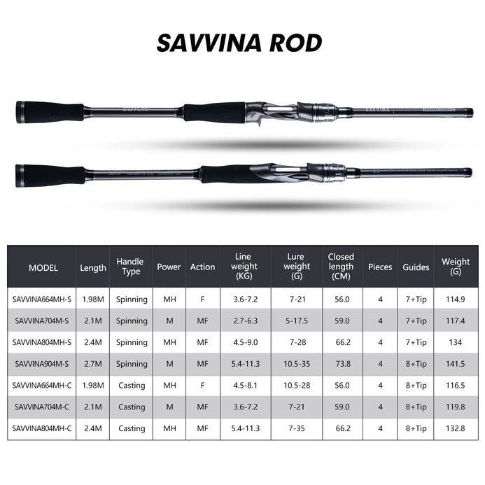 Goture SAVVINA MAGICIAN Spinning/Casting Carbon Rod 4PC 1.8m/2.1m/2.4m/2.7m