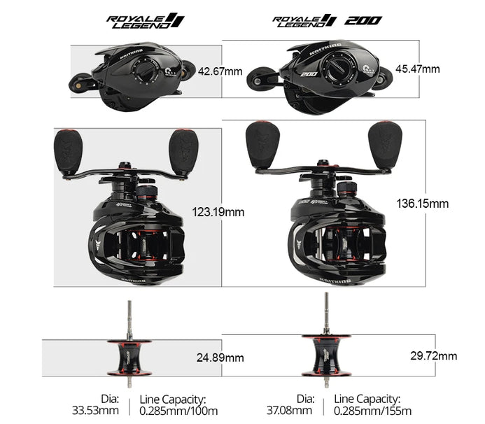 STRONGER - KastKing’s new Royale Legend II casting reels are equipped with an extra-hard stainless steel main shaft, Hamai precision machined brass gears, diamond shape ceramic line guide and CNC aluminum spools for strength and durability. Combine those high-end features with a quadruple disc carbon drag that delivers a fishing stopping 8kg of drag and an incredibly low price, and you have the best value in baitcasting reels available today.