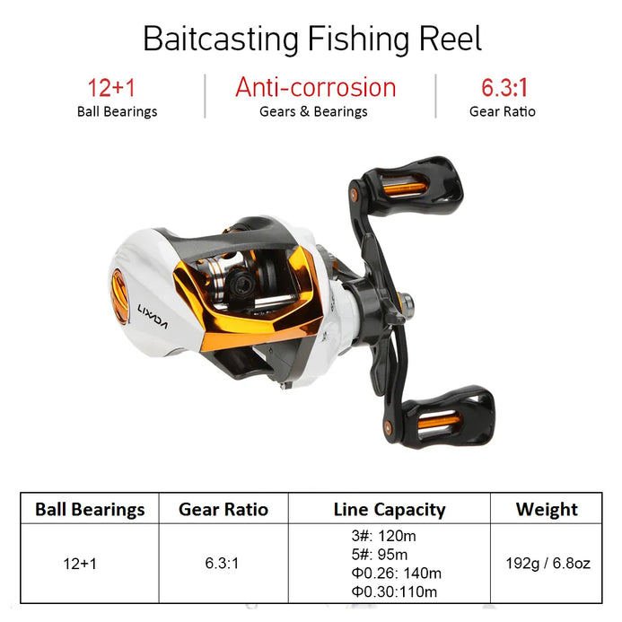 Lixada Baitcaster Reel 12+1BB 6.3:1 Ratio