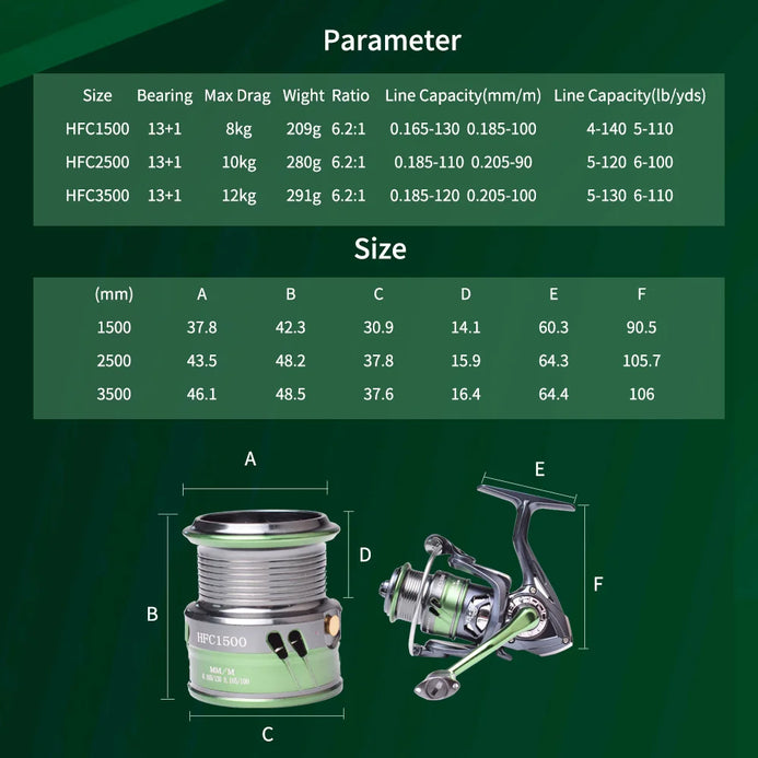 Unleash the thrill of the chase with the Mavllos Alexis Bass Spinning Reel. Boasting a powerful max drag of 8KG and a lightning-fast 6.2:1 gear ratio, this reel is equipped for action. With 13+1 stainless ball bearings for smooth, precision casting, it's the ultimate tool for reeling in your next big catch!