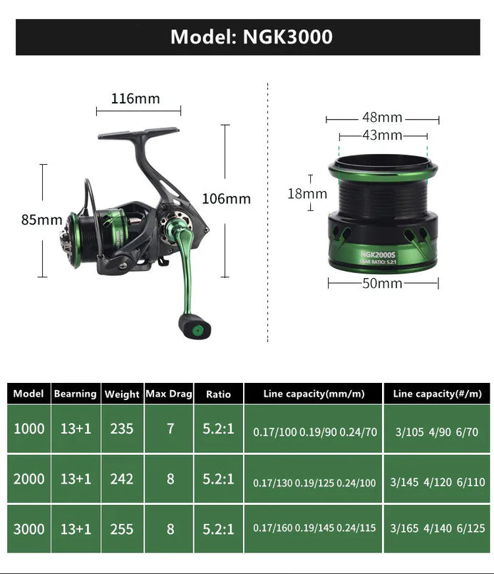 Mavllos NGK Series Spinning Reel 5.2:1 Ratio 8kg Max Drag 13+1BB