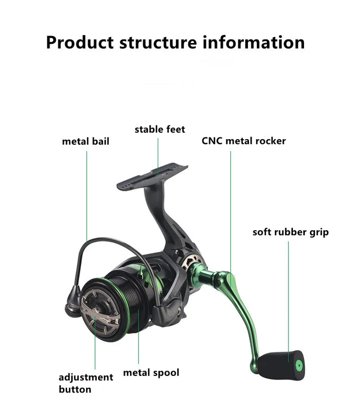• SPINNING REEL: No gaps, Light weight, preservative